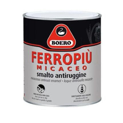 Smalto con elevate proprietà anticorrosive, per esterni ed interni a base di legante alchidico ed ossidi ferromicacei e pigmenti lamellari.
