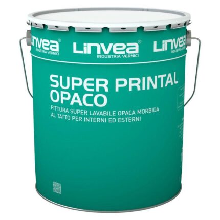 Pittura super lavabile di ottima qualità, dall'aspetto opaco e morbido al tatto, per interni. Il Super Printal Opaco, date le