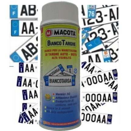 Macota Targhe 3G per la manutenzione di targhe di auto, moto e caravan. Vernice spray  caratterizzata da un'alta visibilita'. Contiene un