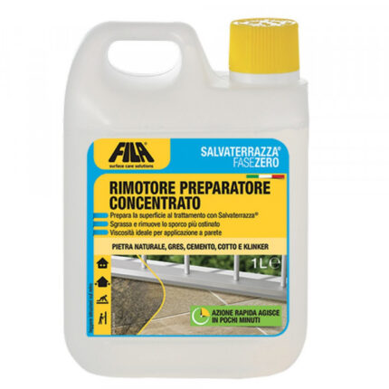 Prepara le superfici al trattamento protettivo consolidante SALVATERRAZZA, sgrassando e rimuovendo lo sporco più tenace. Rimuove l’eccesso di SALVATERRAZZA e di altri impermeabilizzanti