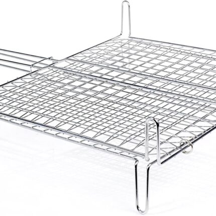 Graticola doppia incrociata chiusa senza piedi. Filo in ferro, acciaio cromato. Misure: 40 x 45 cm Made in Italy
