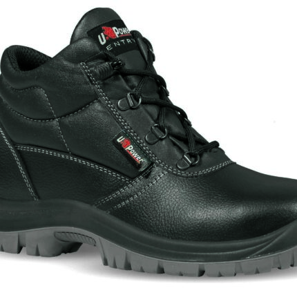 Scarpe antinfortunistiche alte sicure della linea Entry U Power, con tomaia in pelle stampata, idrorepellente, puntale in acciaio, antiperforazione, antiscivolo,