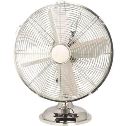 DETTAGLIO PRODOTTO Ventilatore in metallo cromato robusto ed elegante. 3 velocita’, oscillazione orizzontale con blocco. Pala diametro 30cm. Potenza 38w.