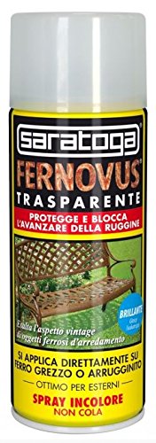 Vernice trasparente antiruggine per interni ed esterni. Protegge e blocca l’avanzare della ruggine, disponibile nelle versioni brillante e opaco. Smalto protettivo e decorativo per il trattamento di ferro Si applica direttamente sulle superfici arrugginite, anche se umide. Elimina le operazioni di carteggiatura e l’impiego di prodotti antiruggine e convertitori La protezione anticorrosiva è valutata in accordo con le norme ASTM D2247/68 e B 117/73, come per Fernovus Gel. Spray incolore, è tixotropico, pertanto non cola e può essere applicato anche su superfici verticali. Il prodotto ha un elevato potere riempitivo