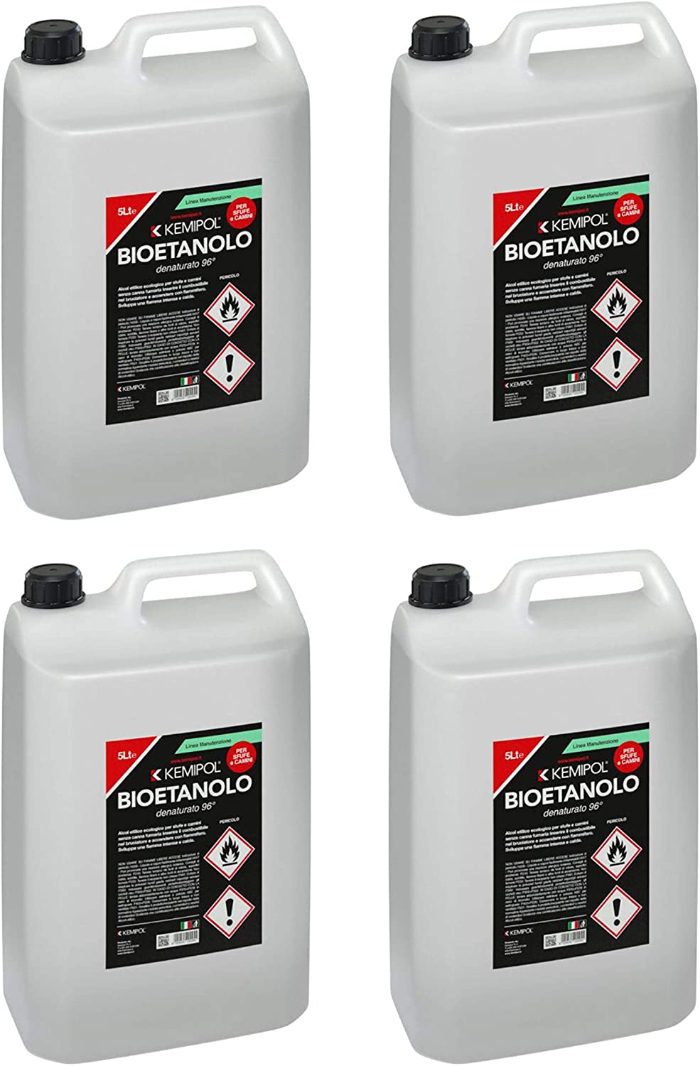 BIOETANOLO KEMIPOL BOX 4 TANICHE DA 5LT TOTALI 20 LITRI INODORE E INCOLORE  NO FUMO – ECOLOGICO  NO ZOLFO PRODOTTO ITALIANO