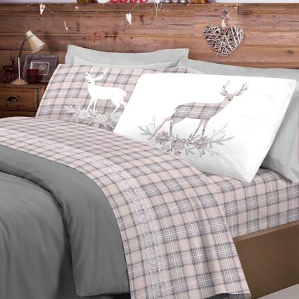 LENZUOLA MATRIMONIALE 100% FLANELLA CERVO BEIGE