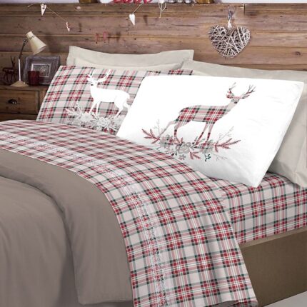 LENZUOLA MATRIMONIALE 100% FLANELLA CERVO ROSSO