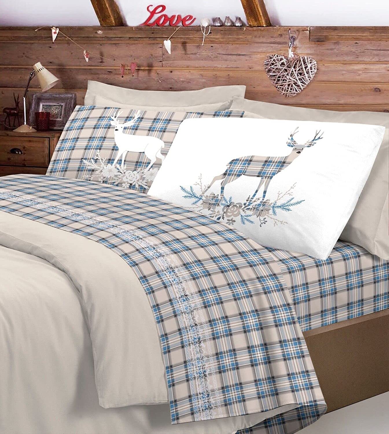 LENZUOLA MATRIMONIALE 100% FLANELLA CERVO AZZURRO