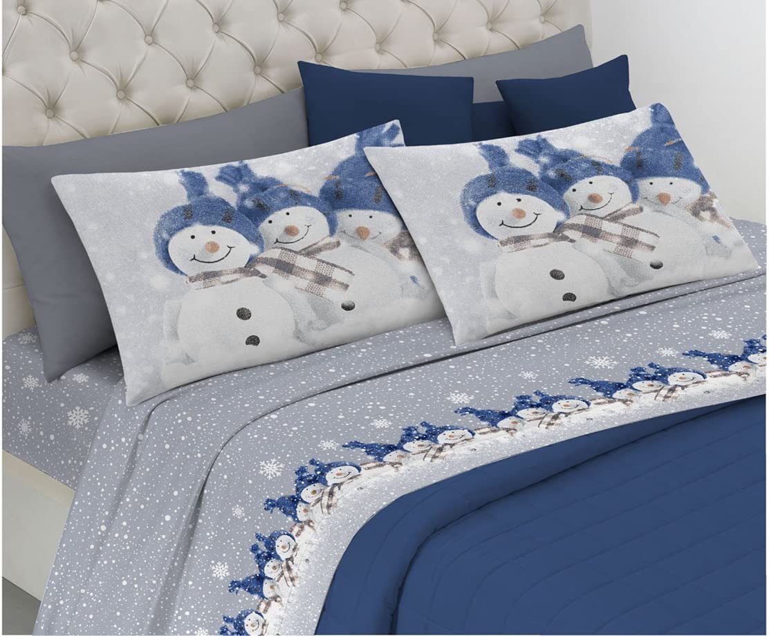 LENZUOLA MATRIMONIALE 100% FLANELLA SNOWMAN BLU