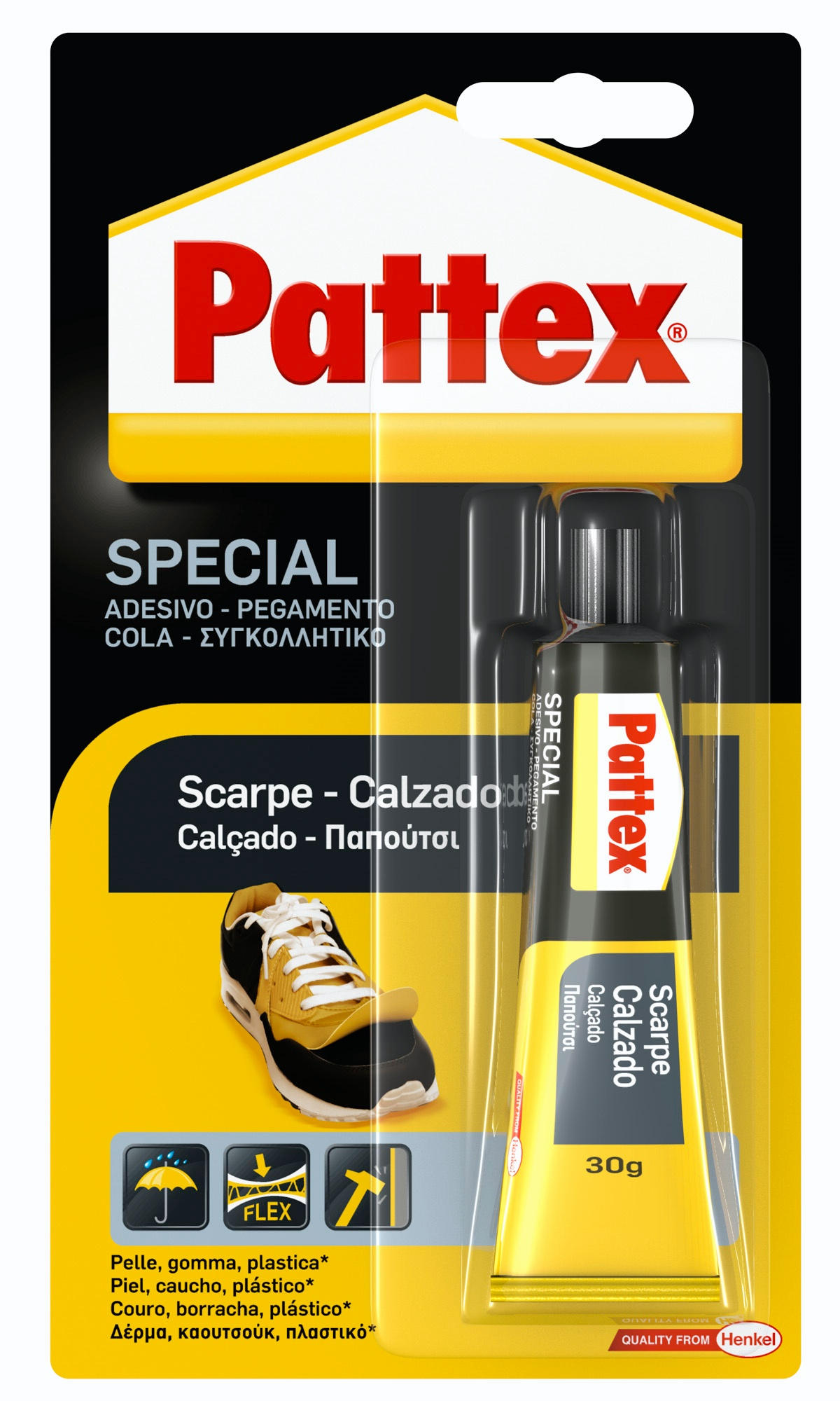 Adesivo a contatto specifico per la riparazione di scarpe in pelle, cuoio, gomma e tela. Ideale per riparazioni rapide grazie alla sua presa veloce; flessibile per adattarsi ai movimenti della scarpa; resiste all’acqua.
