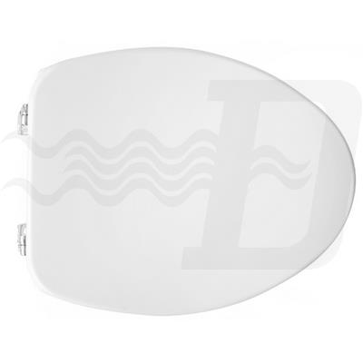 Sedile (Forma tipo 6 – cerniere tipo C) dedicato a casa ceramica Ideal Standard serie Fiorile. Dimensioni: Lunghezza cm 44.5; Larghezza cm 35.5; Interasse cerniere cm 16 mod. con cerniere fisse. Sedile in legno stabilizzato, colato in poliestere. Cerniere in ottone cromato e viti di fissaggio in acciaio inox.