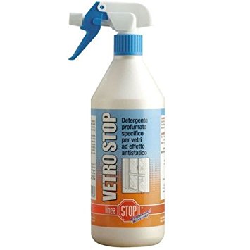 Vetro Stop è un detergente a base di solventi idrofili vegetali con elevato potere disgregante nei confronti dello sporco. Pulisce a fondo ogni tipo di superficie lavabile come vetri, specchi, infissi, laminati plastici etc. La sua formulazione, grazie all'aggiunta di un particolare additivo, rende tutto lucido e brillante, oltre a conferire un effetto antistatico alle superfici trattate. Può essere utilizzato anche per la lucidatura di oggetti comprese le carrozzerie d'auto. Biodegradabile oltre il 90%.